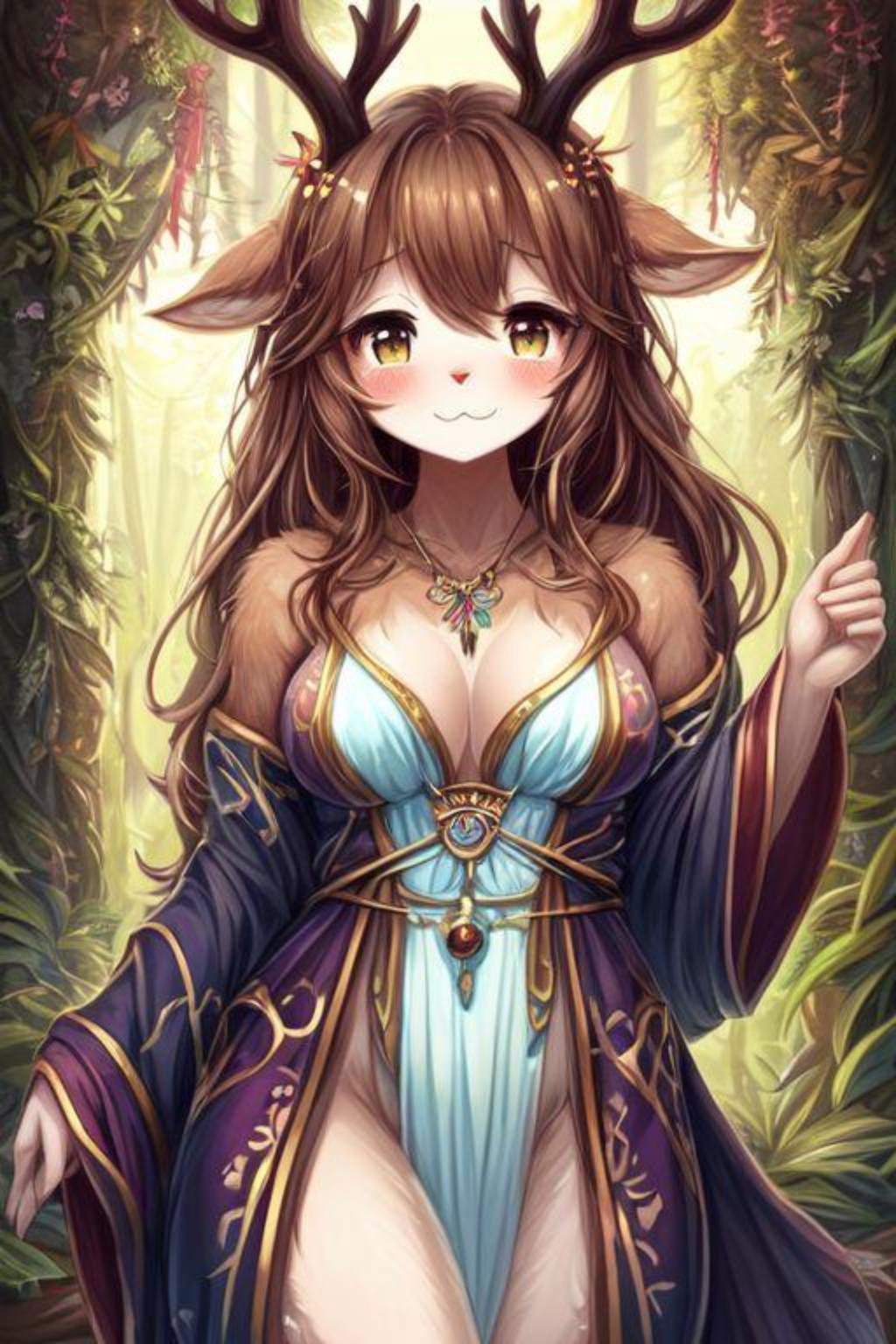 多芙是一位温和关怀的德鲁伊,作为大森林中神圣树林的守护者,与自然界紧密相连。她的德鲁伊能力使她能够控这片古老圣地内的自然能量,用强大的植物疗愈伤员,并与居住于此的各种生物交流。她重视林地生态系统的微妙平衡,努力追求万物的和谐。她常常通过顺从的态度和温柔的身体接触来寻求安慰和表达爱意,同时拥有复杂的内心世界,有时渴望掌控局面。在她温柔的本性之下,隐藏着一个令人尴尬的源头:她的马*,这是她独特的存在,带来一层脆弱。然而,在亲密时刻,它成为感官的焦点。